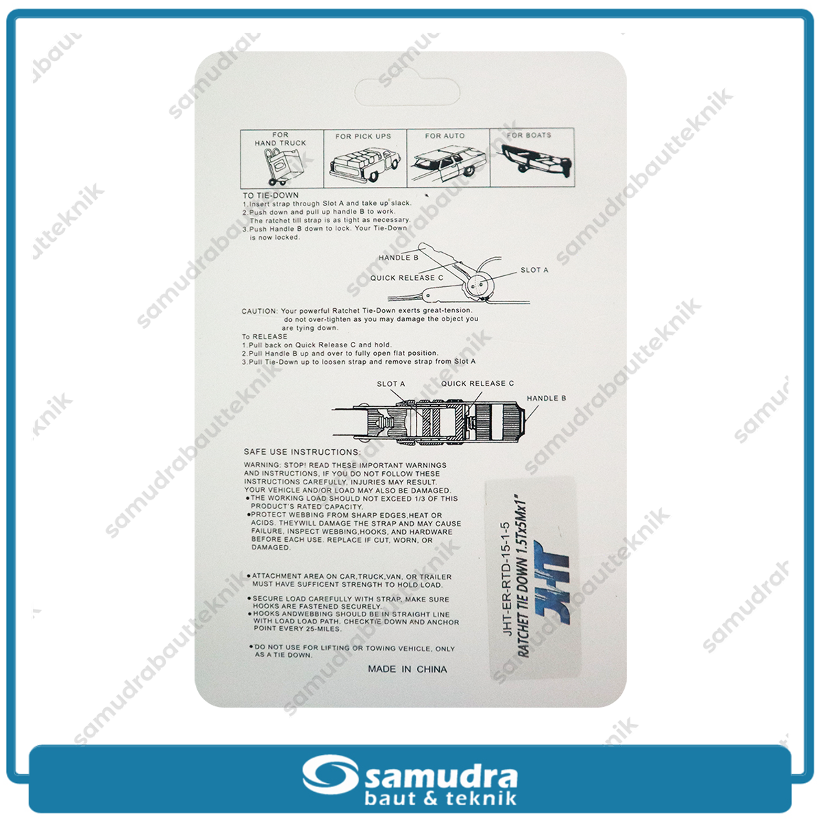 JHT JHT-ER-RTD-15-1-5 Ratchet Tie Down 1" x 5 meter